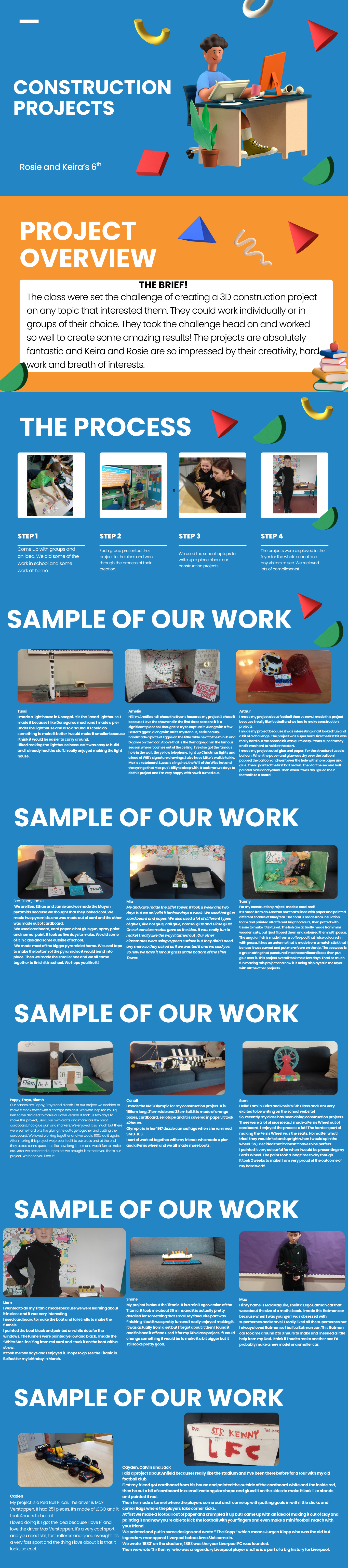 Check out the fantastic work by Keira & Rosie's 6th class. They have designed and created a variety of projects which they displayed in the school. Well Done everyone:)